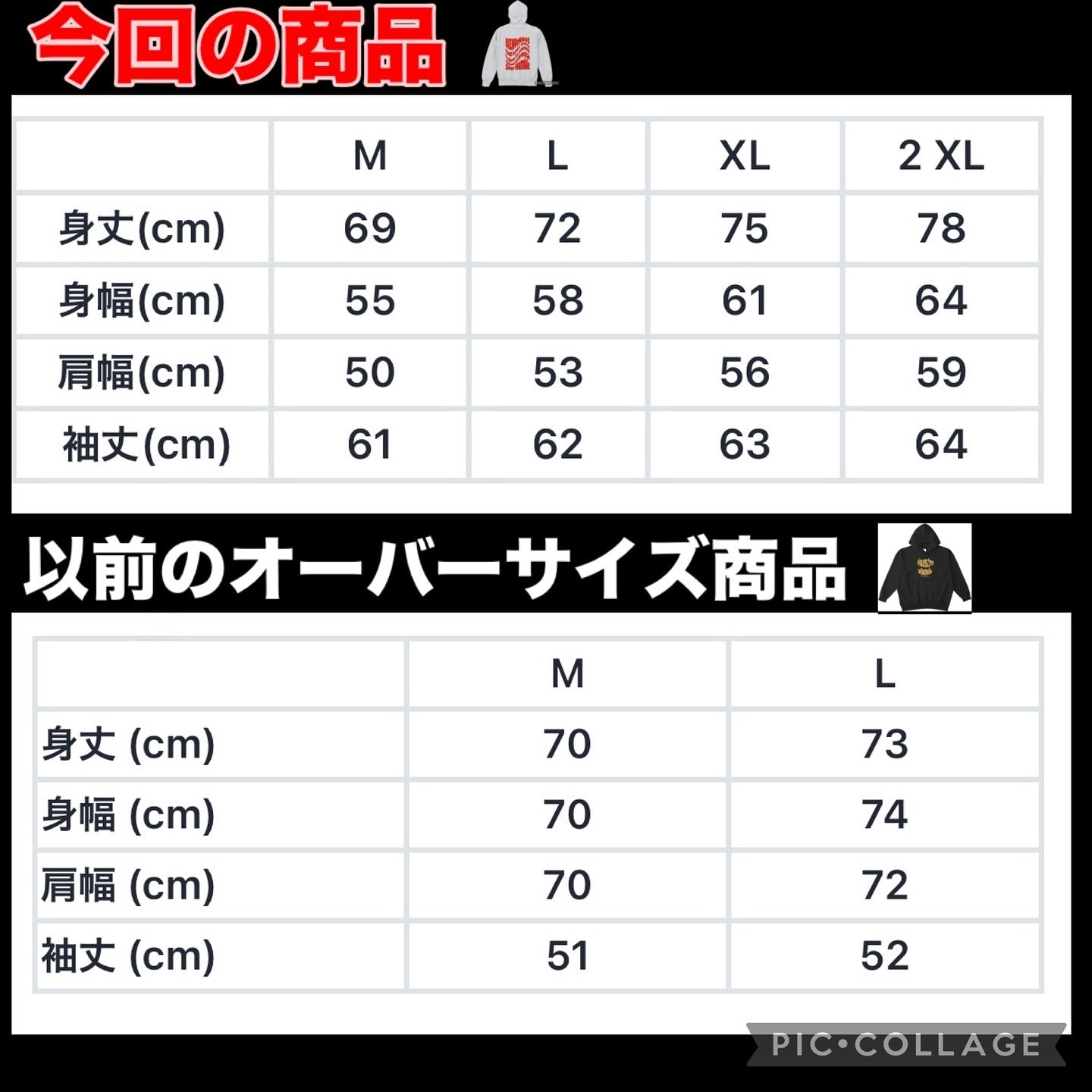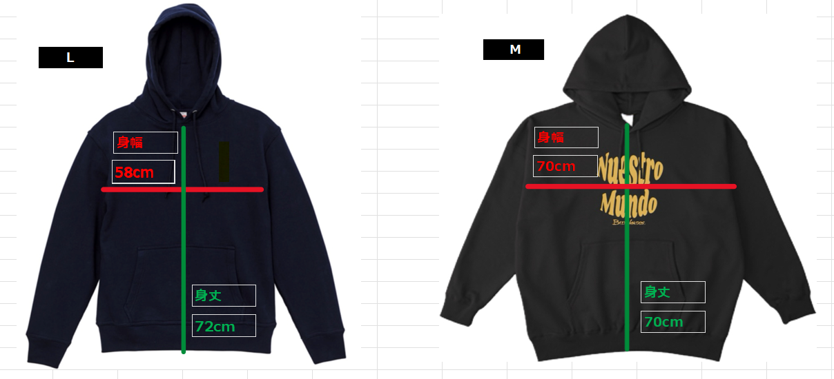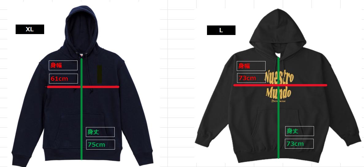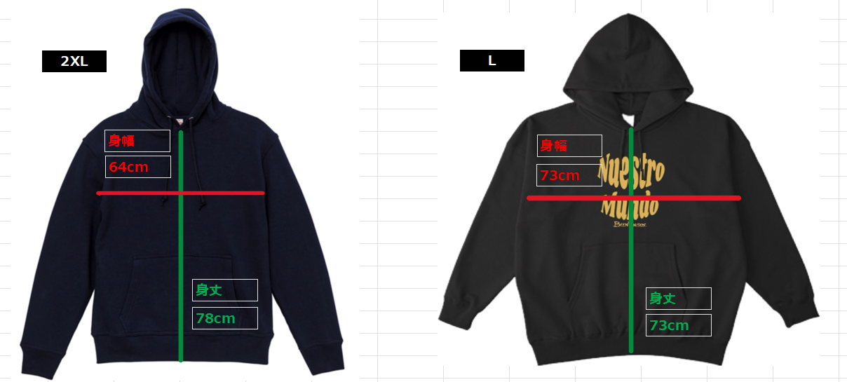 (左)今回のヘビーウェイトパーカー (右) 以前のビックシルエット